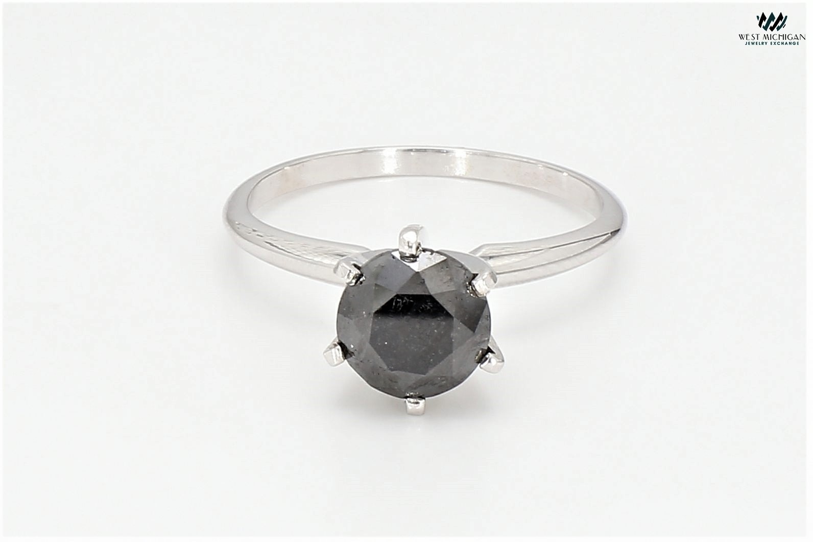 14K White Gold Black Diamond Solitaire Fashion Ring| 1.75 CT TDW| 2.8 Grams| Size 7.75" - R8977B quantity