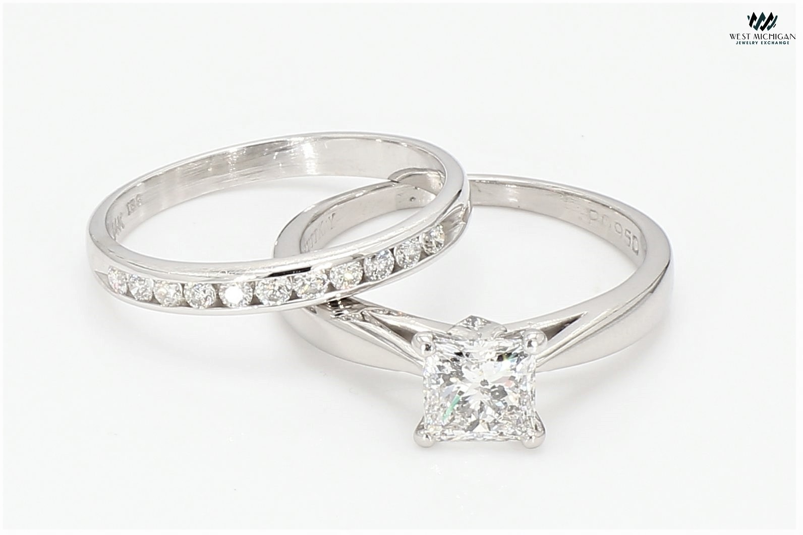 14K White Gold Diamond Bridal Ring Set| 1.01 CT Center| 1.25 CT TDW| 4.8 Grams| Size 7.25″- R7021