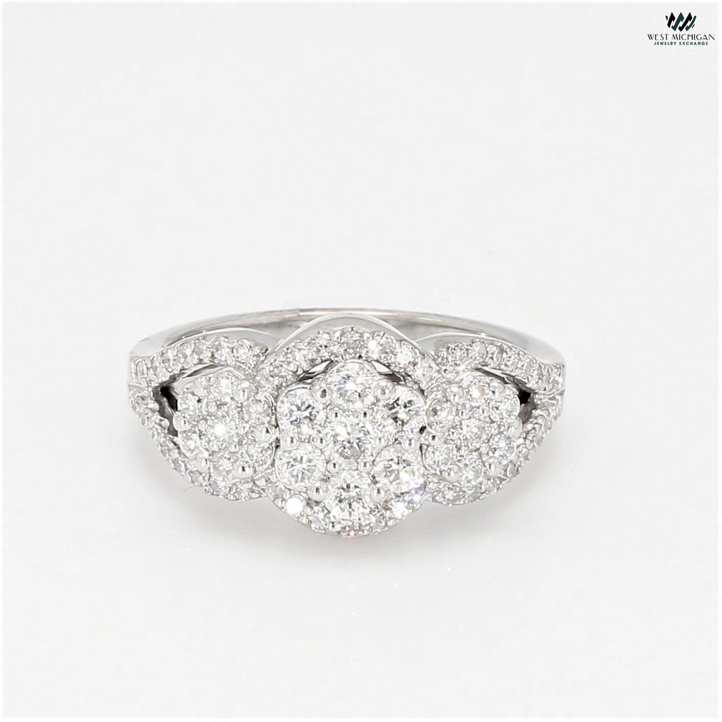 10K White Gold Cluster Diamond Ring| 2.00 CT TDW| 5.1 Grams| Size 7″ – R5554