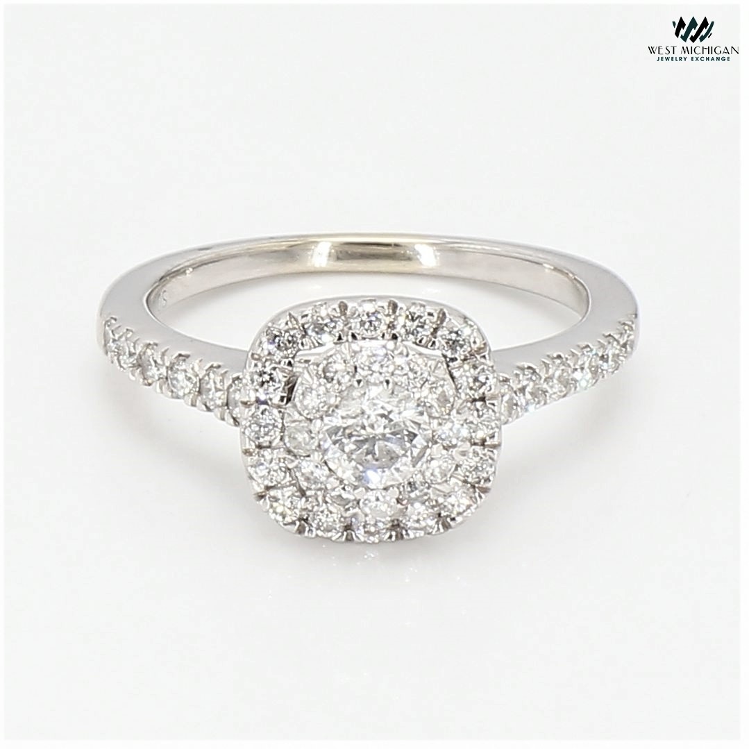 14K White Gold Cushion shaped Frame Diamond Engagement Ring| 1.00 CT TDW| 3.1 Grams| Size 5″ – R9822