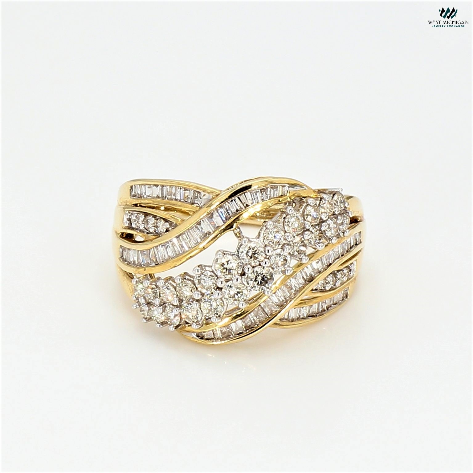 10K Yellow Gold Diamond Cluster Fashion Ring| 1.10 CT TDW| 4.3 Grams| Size 6.75″ – R9459