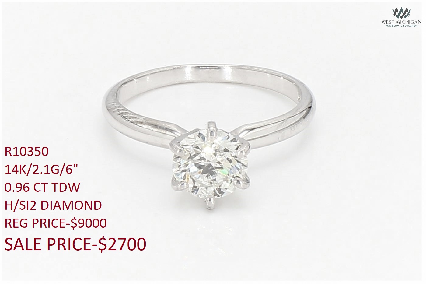 14K White Gold Diamond Solitaire Ring| 0.96 CT TDW| Color-H| Clarity-SI2| 2.1 Grams| Size 6″ – R10350